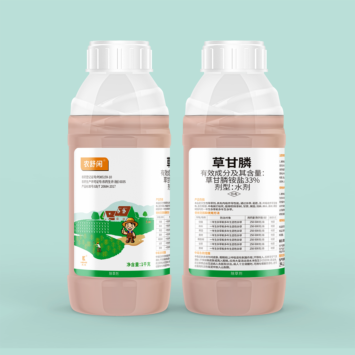 •药剂用量:以200g/瓶(33%草甘膦铵盐)为例,每亩用量500-1000毫升(兑水15-20公斤均匀喷雾);对牛筋草、小飞蓬等抗性杂草,用量